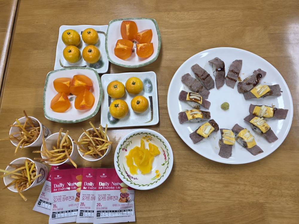 맛있는 어묵과 상큼한 귤, 달콤한 홍시까지 정성 가득한 식사 덕분에
