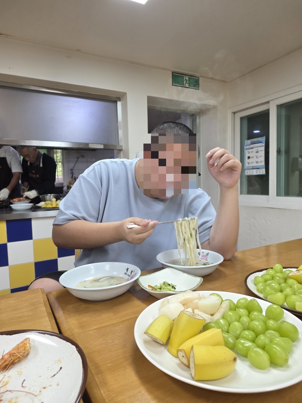 고소하게 구워진 대하구이에 진~한 국물의 사골버섯 칼국수, 달콤한 과일까지!