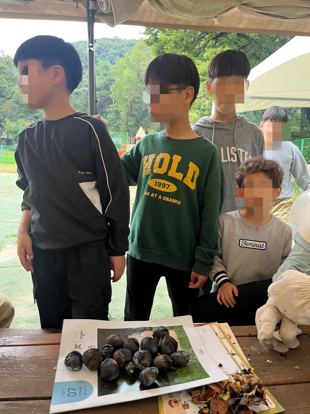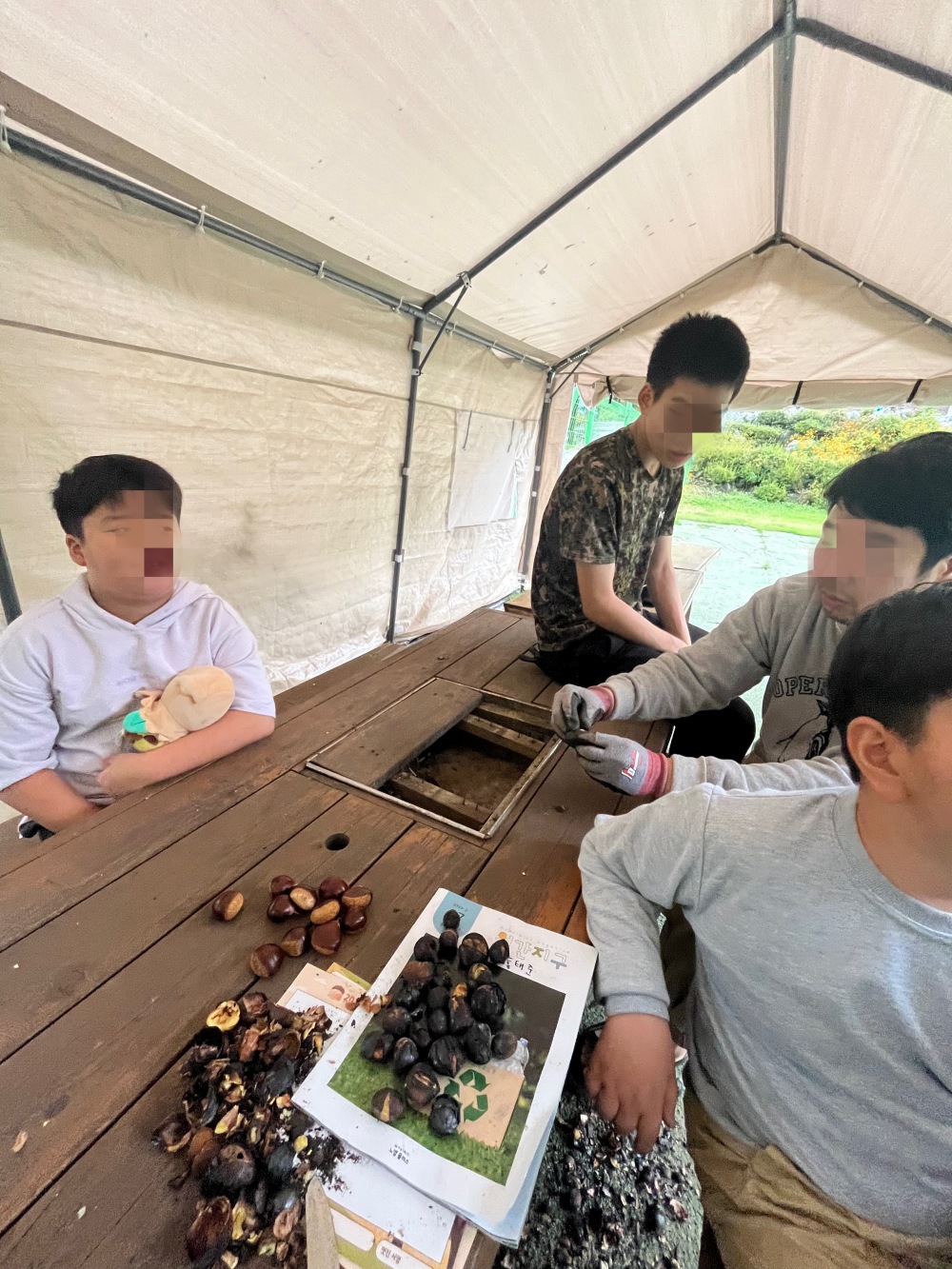 밤이 익어서 아이들에게 맛있는 간식을 제공해 주고 있네요.